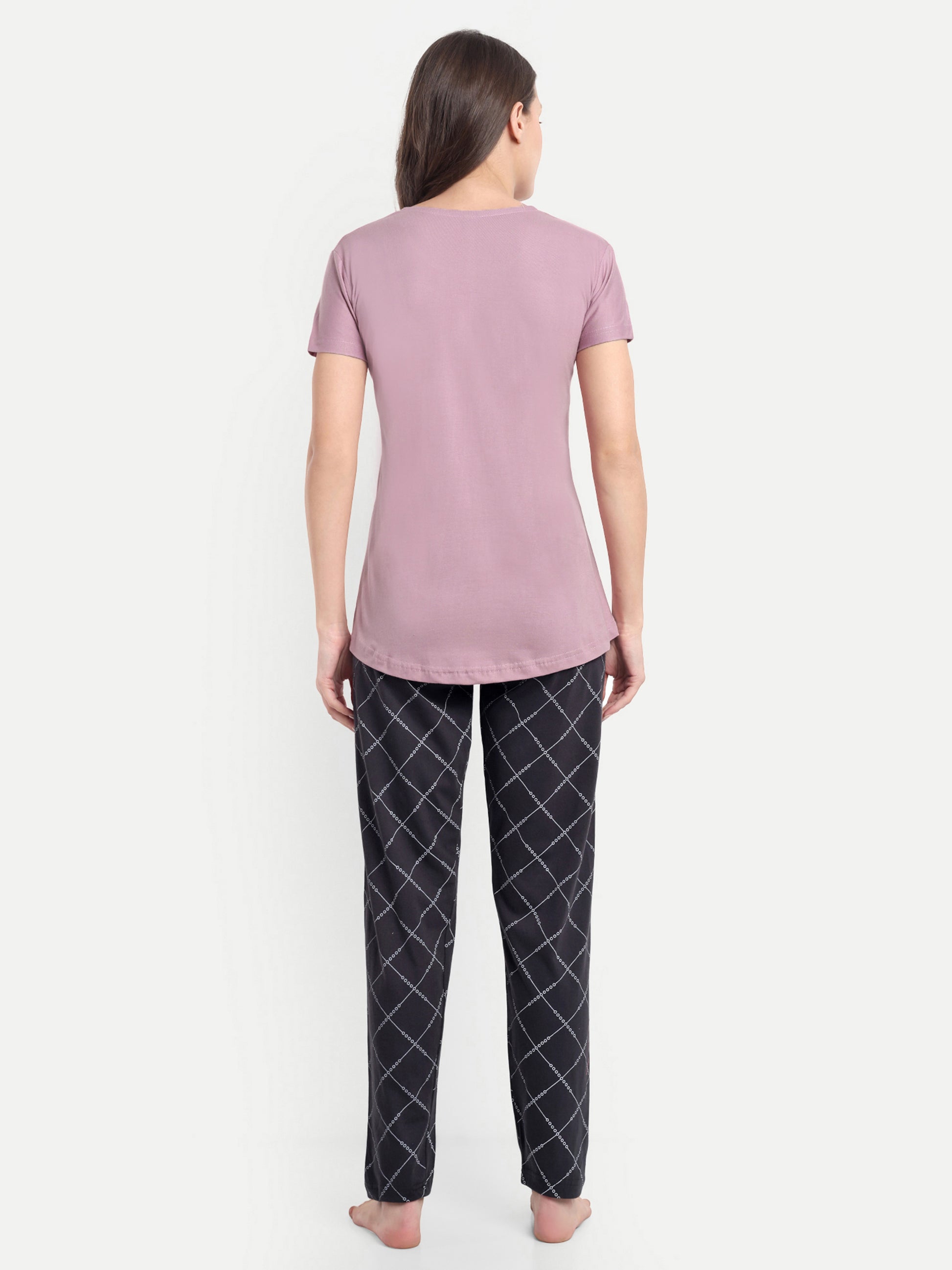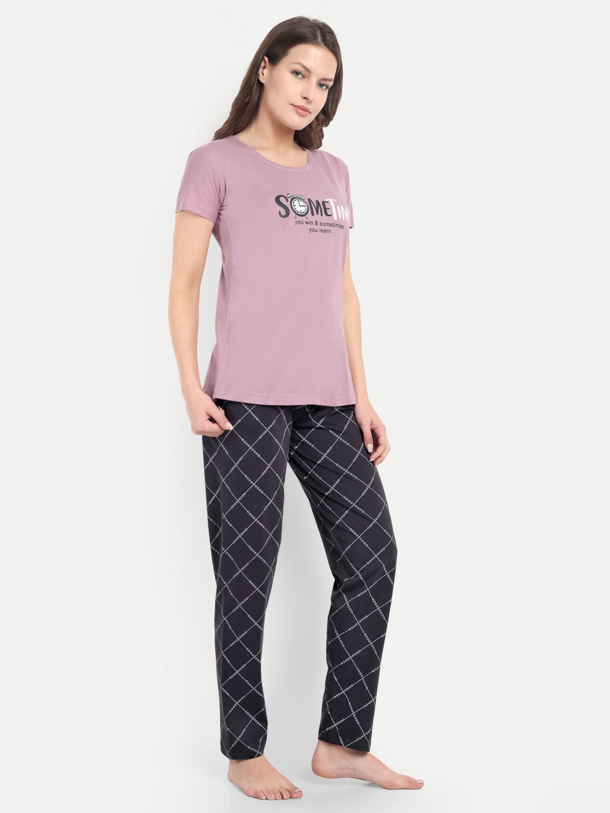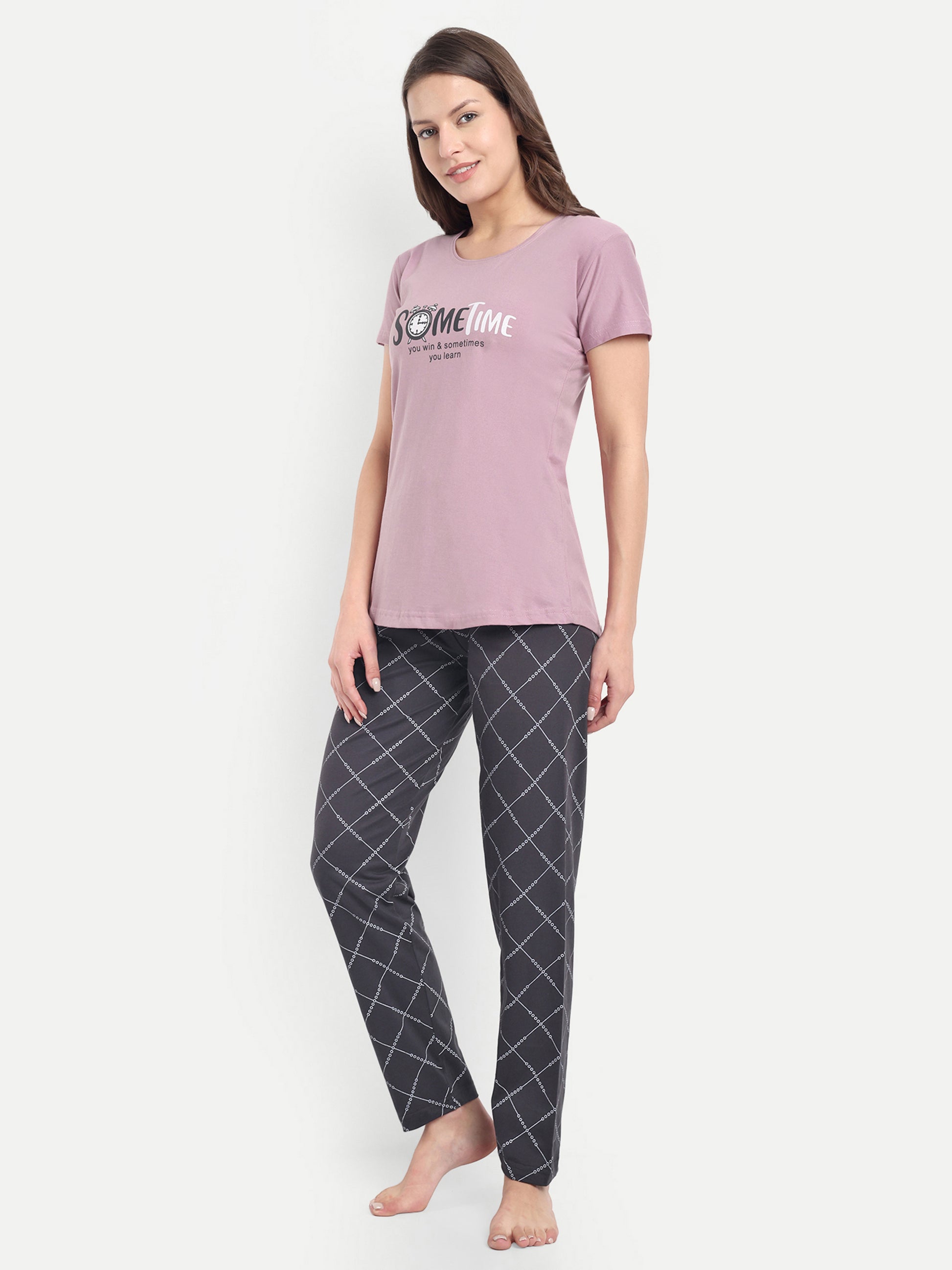 Women's Cotton Checked Night Suit Set of T-shirt & Pyjama (15057a)