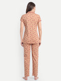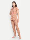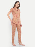 Introducing the Mushy Mod Cherry Printed Night Suit Set for women – where comfort meets style. Crafted from 100% Cotton, this two-piece nightwear ensemble is designed for a relaxing and fashionable night in. The Notched Collar and Half Sleeve shirt, adorned with a delightful cherry print, exude sophistication. Paired with comfortable Pajamas in a soothing Peach color, it's perfect for night dress, sleepwear, loungewear, and home wear. The Regular (Relaxed) Fit ensures ease of movement. To find your ideal fit, consult the Size Chart on the Last Product Image. Elevate your bedtime routine with Mushy Mod's chic and cozy nightwear.