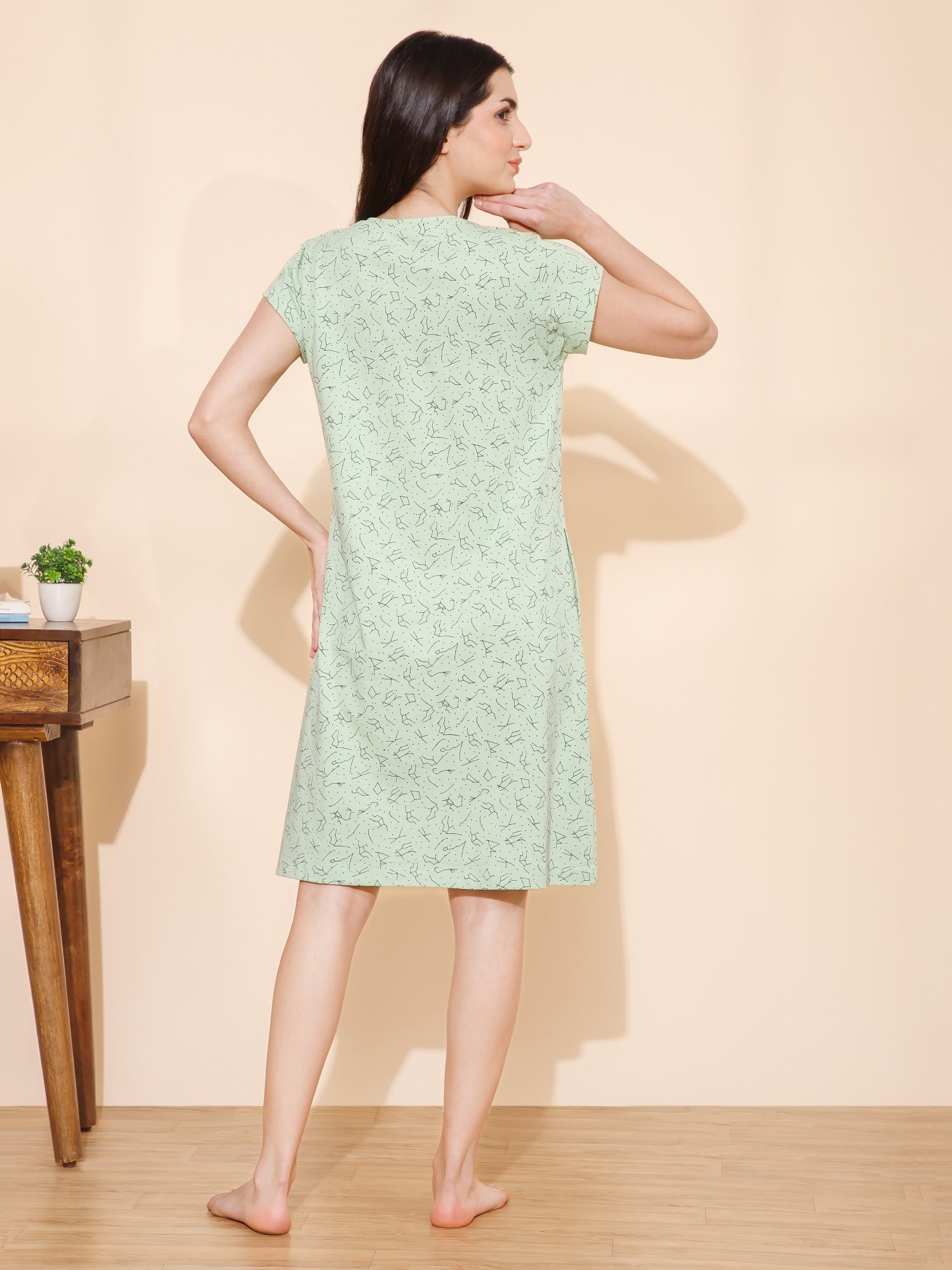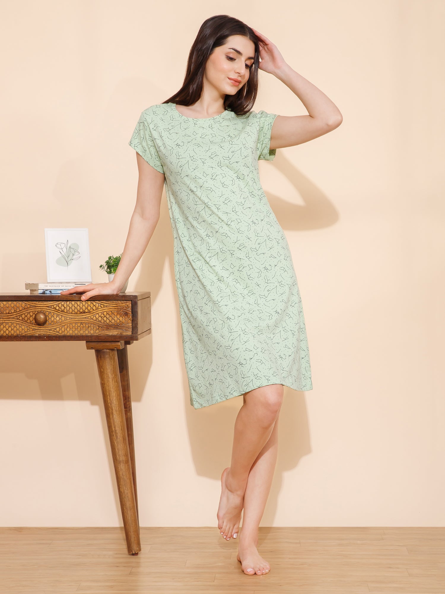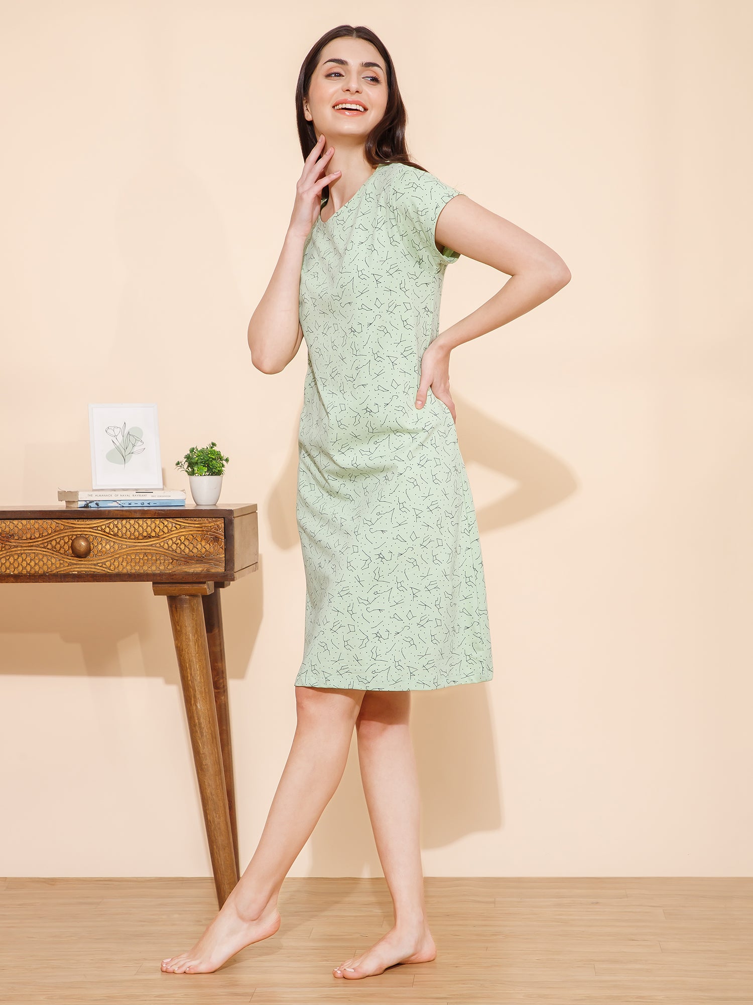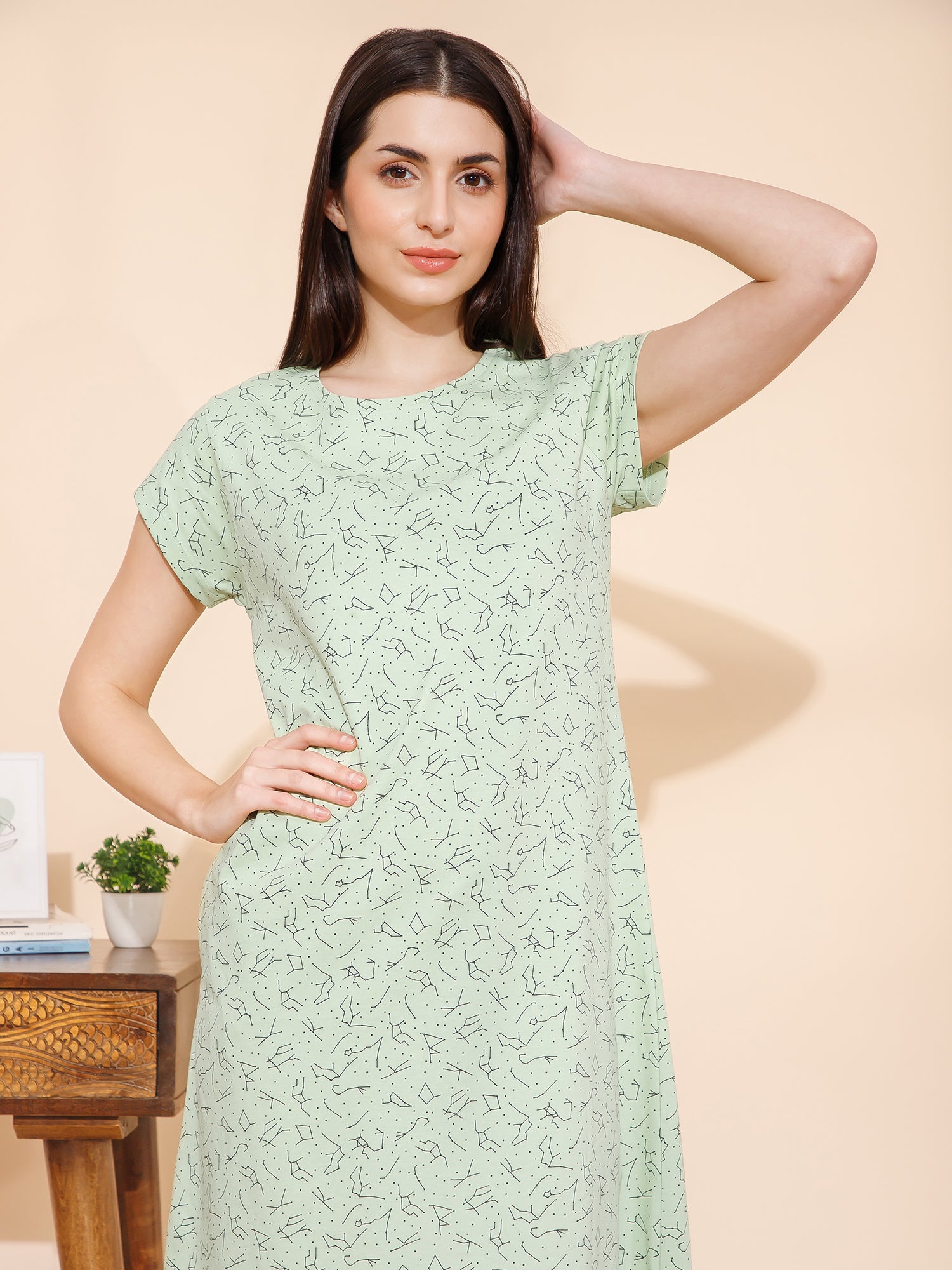 Cotton Lines Print Knee Length Night Dress (mm-3005-3)