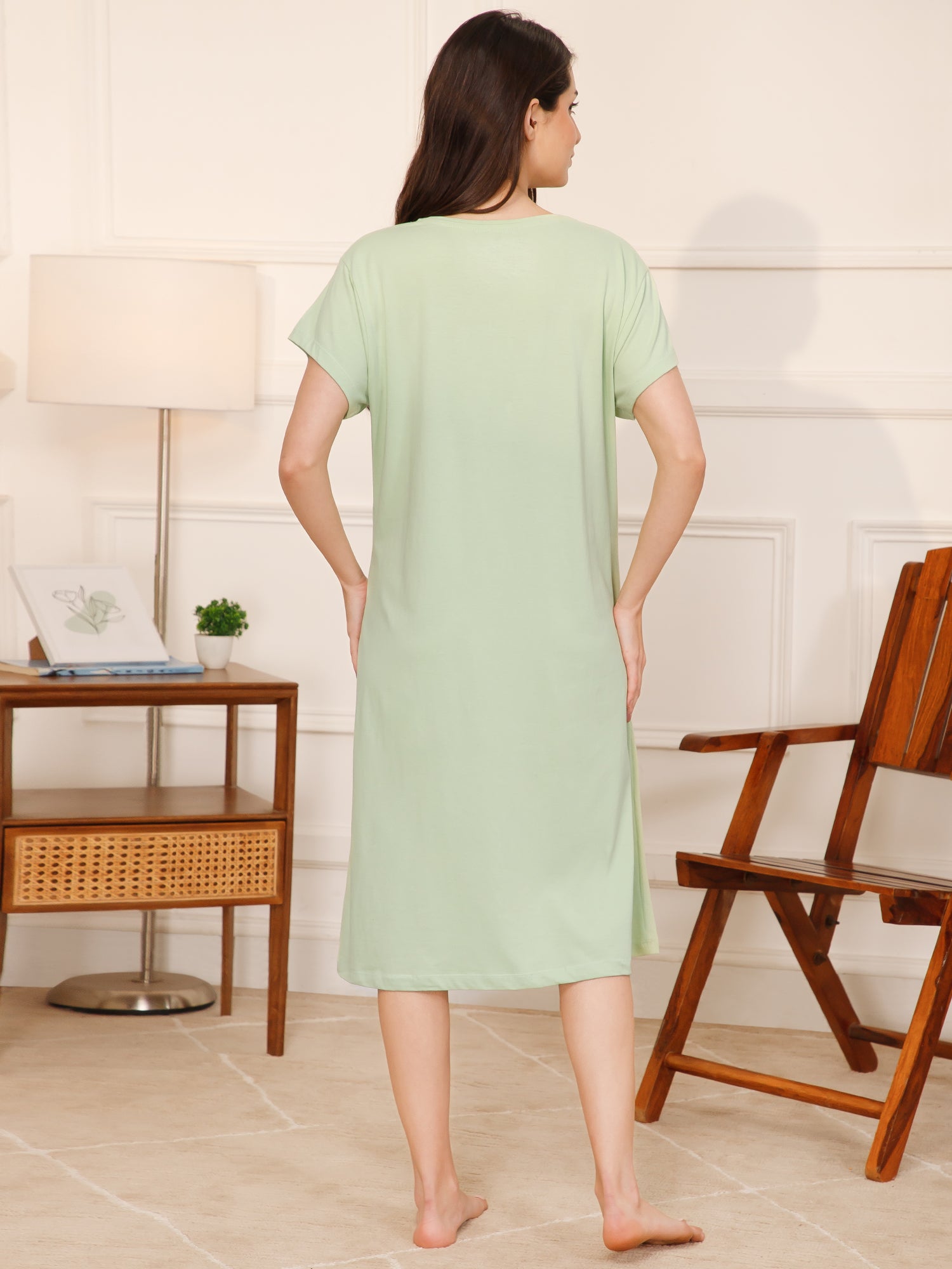 Cotton Chest Quote print Knee Length Night Dress (mm-3101-2)