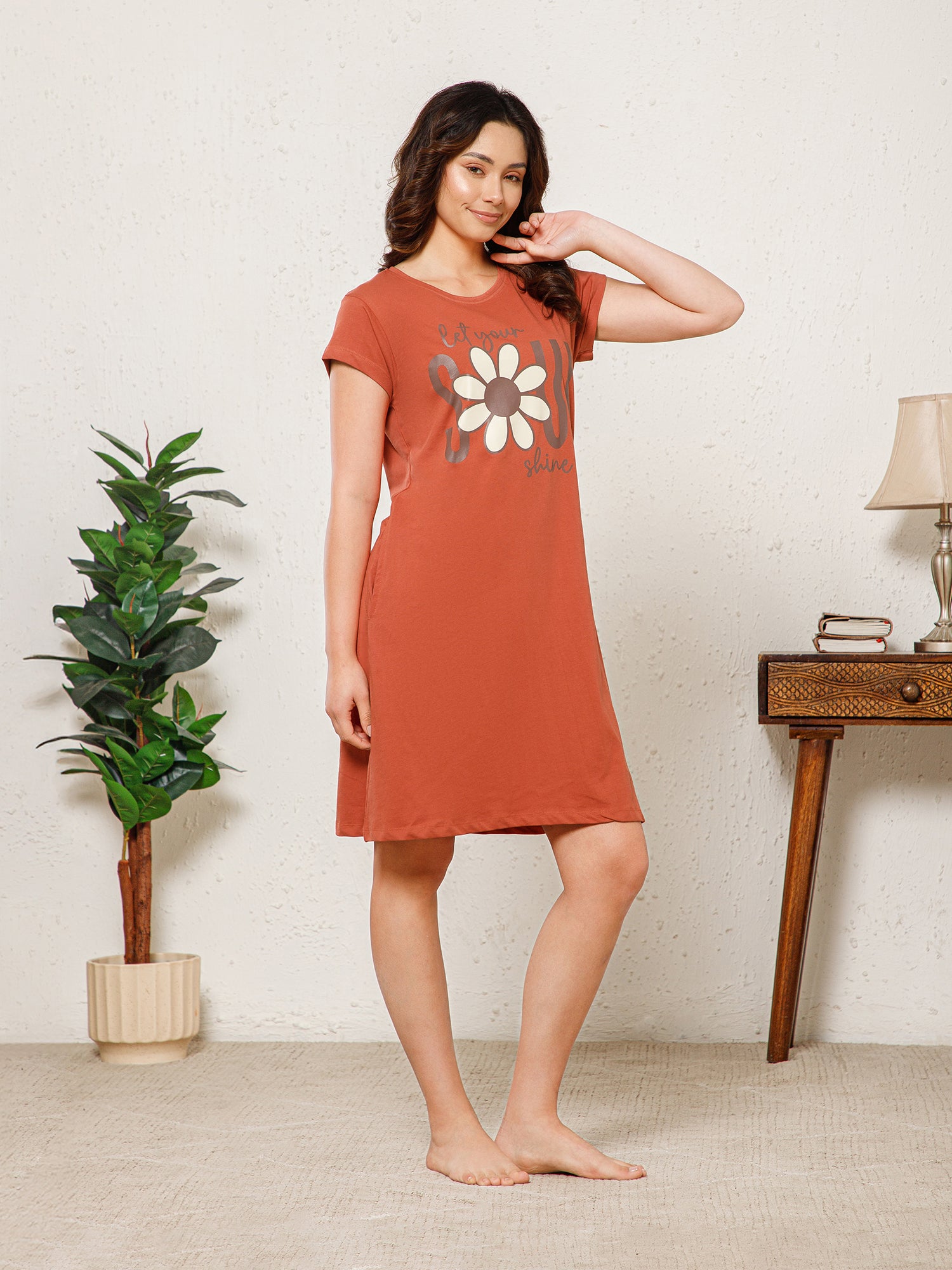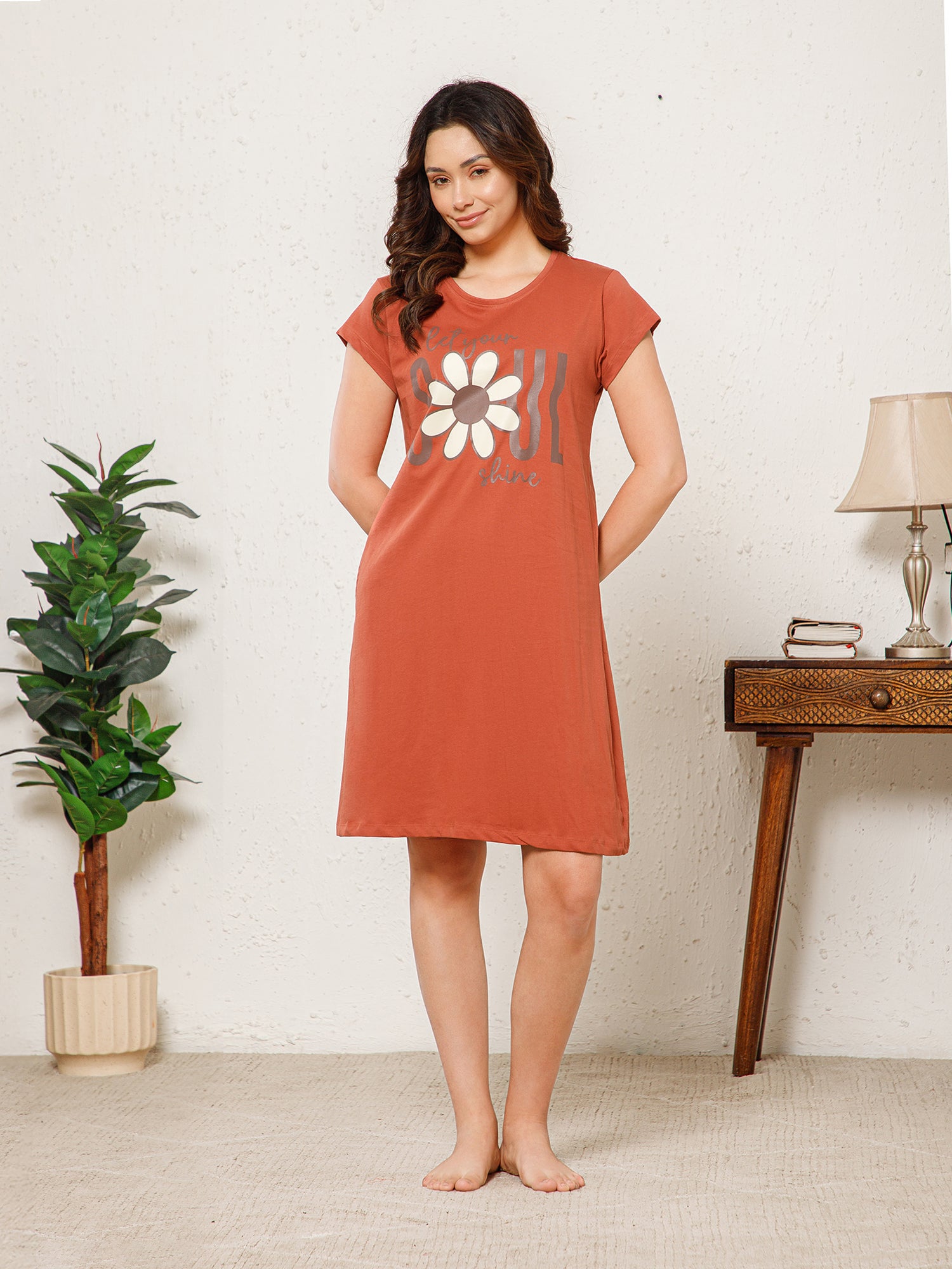 Cotton Chest Quote print Knee Length Night Dress (MM-3102-4)